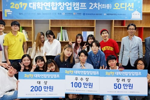우리 학교 LINC+사업단이 ‘대학연합 창업캠프’와 ‘대학 연합 프로그래밍 경시대회’를 개최했다. ‘대학연합 창업캠프’는 LINC+사업단 창업교육센터(센터장 김경호 교수)가 주관하고 한세대학교, 계원예술대학교가 함께 참여했다. 우리 학교의 장점인 기술 분야와 한세대, 계원예대가 두각을 보이고 있는 디자인 분야에서 학생들이 서로 교류함으로써 창업 융합 모델을 개발하도록 돕기 위해 마련된 대회다. 창업캠프는 지난 2014년 우리 학교와 계원예술대학교의 연합으로 처음 시작되었고 2015년부터는 한세대학교가 함께 참여해, 3개 대학이 함께 하는 형태로 정착됐다. 창업캠프에서는 6월 한 달 간 창업 기초 소양 교육이 진행됐고 이후 1차 오디션을 통해 6개 팀을 최종 오디션 참가자로 선정했다. 6개 팀이 참여한 최종 오디션은 지난 7월19일 원천정보관에서 열렸다. 심사위원단은 참가자들의 ▲사업 가능성 ▲지속 가능성 ▲위험 극복방안 등을 검토해 최종 수상자를 결정했다. 우리 학교 김영호 산학협력중점교수, ㈜파이브툴 김동환 대표, 한세대학교 디자인학부 문희용 교수, 계원예술대학교 천상현 산학협력중점교수가 심사를 맡았다. 창업캠프 대상은 우리 학교 조성현(금융공학과) 학생을 비롯한 4명의 학생이 속해있는 2조가 수상했다. 2조는 기능성 렌즈 기기를 제안했다. 우수상은 3조 김기운(응용화학생명공학과) 외 3명에게, 장려상은 9조 최창은·전준표(건축학과) 외 2명에게 돌아갔다. 학교는 수상팀에게 전문 변리사를 통한 특허 출원을 지원할 계획이다. 또 캠프 수료생들을 대상으로 ‘2017 월드 옥타 차세대 글로벌 창업 무역 스쿨’과 ‘2018 스타트업 매스 챌린지’ 지원 기회를 부여하는 등 실전창업역량 배양을 위해 꾸준히 지원할 예정이다. 한편 우리 학교 LINC+사업단과 소프트웨어중심대학사업단이 개최한 ‘경인지역 6개 대학 연합 프로그래밍 경시대회’ 역시 성황리에 마무리됐다. 올해로 3회째를 맞는 이 대회에는 우리 학교와 경희대, 성균관대, 한양대 ERICA, 인하대, 한국항공대가 참여하고 있다. 각 대학 별로 진행된 예선에서 선발된 60명이 본선 경연에 진출했다. 본선 대회는 서울 강남구에 위치한 네이버 D2 스타트업 팩토리에서 열렸다. 대상의 영예는 인하대학교 박철용 학생(컴퓨터공학과 4학년)에게 돌아갔다. 수상자 5명은 다음과 같다. ▲대상 박철용(인하대학교 컴퓨터공학과 4학년) ▲최우수상 류호준(성균관대학교 소프트웨어학과 2학년) ▲우수상 황성호(한국항공대학교 3학년) ▲장려상 신태민(한국항공대학교 소프트웨어학과 3학년) ▲장려상 김연교(아주대학교 소프트웨어학과 2학년) 시상식은 지난 7월19일 율곡관 총장실에서 진행됐다. 유희석 총장직무대행과 최경희 산학부총장, 류기열 소프트웨어중심대학사업단장이 시상하고 학생들을 격려했다.