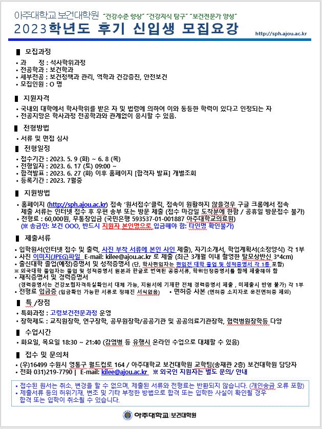 | 18401 | 입학 | 보건대학원교학팀 | 2023-05-11 | ||
