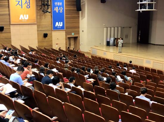 박형주 총장이 지난 6월 12일 우리 학교 종합관 강당에서 열린 '교사를 위한 대입정보 컨퍼런스'에 참석했다. 박 총장은 참석한 전국의 고교 교사들을 대상으로 아주대학교에 대해 소개했다. 우리 학교 입학처가 개최한 이번 컨퍼런스는 전국의 고교 교사들이 학생 진학지도에 실질적으로 활용할 수 있는 정보를 제공하기 위해 마련됐다. 송현섭 면목고 교장이 을 주제로 발표했고, 김정현 한국대학입학사정관협의회 회장은 에 대해 발표했다. 우리 학교 고지영 입학사정관은 를 주제로 발표에 나섰다.박형주 총장은 인사말을 통해 앨빈 토플러의 "미래 사회에서는 글을 읽지 못하는 자가 '문맹'인 것이 아니라, 배울 줄 모르는 자가 '문맹'으로 취급받게 될 것"이라는 이야기를 인용하며 대학 교육의 변화 필요성에 대해 언급했다.박 총장은 "아주대학교는 '작지만 강한 대학'으로 학생들의 성장을 위해 다양한 프로그램을 마련해 두고 있다"며 "앞으로 대학의 본질적 기능인 교육과 연구에서의 성장을 위해 더욱 노력해 나갈 것"이라고 말했다.이어 "기초교육 및 소양교육을 대학 기능의 핵심으로 격상하고, 지적 소양과 취업이라는 상이한 가치를 모두 담아내는 교육과정을 만들려고 한다"며 "학생의 미래를 책임지겠다는 각오로 시대 변화에 대응하며 더욱 성장하는 대학이 되겠다"고 덧붙였다.
