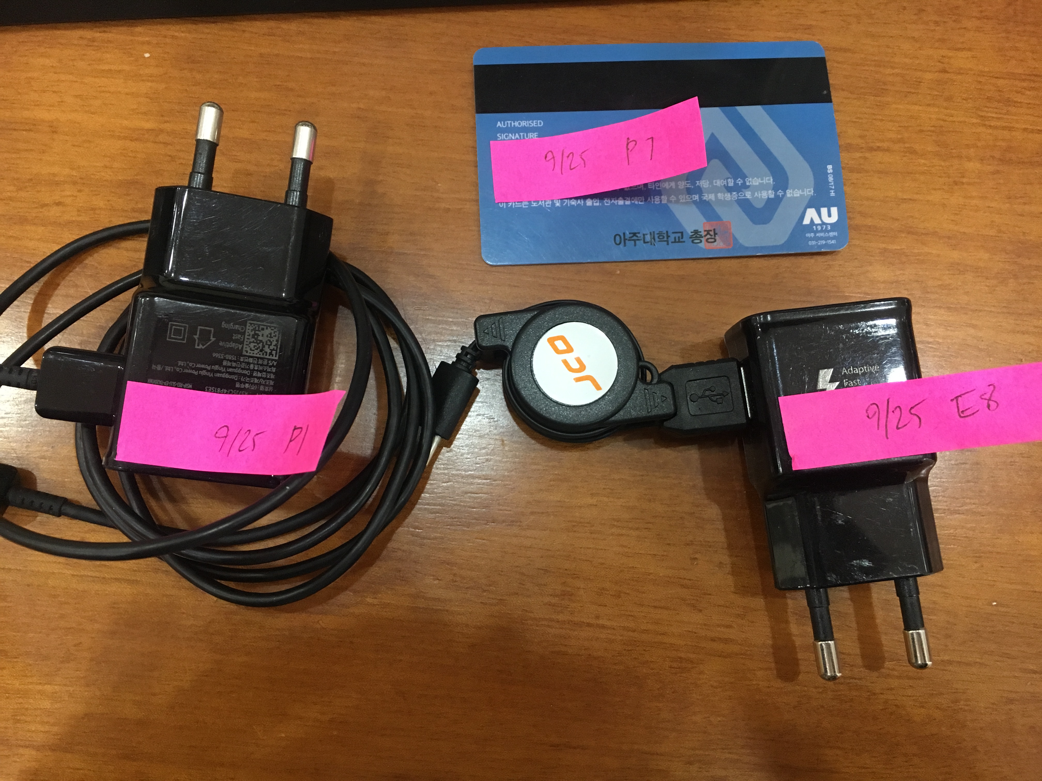 9/25 멀티실내 습득물 - 충전기2개, 학생증