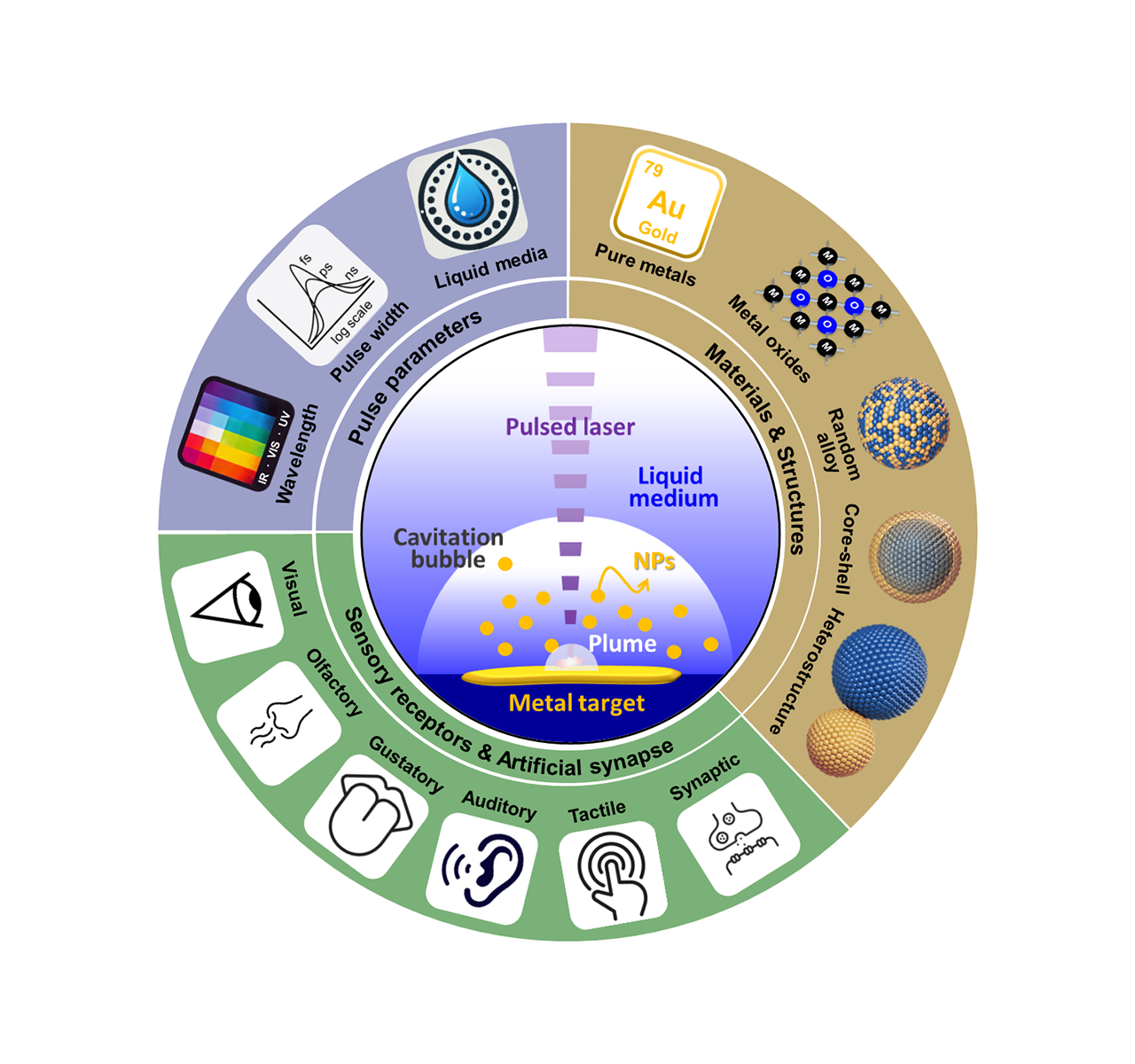 아주대 연구진이 빛을 활용한 나노 소재 합성 기술로 고순도 금속 나노 입자를 대량 생산할 수 있는 길을 제시했다. 차세대 인공 감각 센서와 인간의 뇌를 모사한 뉴로모픽 소자와 같이 정밀 감지 기능이 필요한 응용 분야에 널리 활용될 수 있을 것으로 기대된다. 박성준 교수(전자공학과·지능형반도체공학과) 연구팀은 빛(Light)기반 액상 레이저 절삭 기술을 통해 유기 잔류물 없는 고순도 금속 나노 입자를 화학 반응 없이 대량 생산할 수 있는 전략을 제시했다고 밝혔다. 이번 연구성과는 ‘레이저 합성법 기반 금속 나노 입자를 활용한 차세대 인공 감각 시스템 개발(Scalable metal-based nanoparticle synthesis via laser ablation in liquids for transformative sensory and synaptic devices)’이라는 리뷰논문으로 제조·공정 분야 저명 학술지 <인터내셔널 저널 오브 익스트림 매뉴팩처링(International Journal of Extreme Manufacturing, IF 21.3 JCR 상위 0.7%)>에 지난 7월 게재됐다. 이번 연구에는 아주대 정보통신전자연구소의 최준규 박사가 제1저자로, 지능형반도체공학과 석박사 통합과정생 백석현 학생이 공동저자로 참여했고, 삼성전자 DS부문 소재기술팀에 재직 중인 이정훈 아주대 지능형반도체공학과 박사과정생과 박성준 아주대 교수(전자공학과·지능형반도체공학과)가 공동 교신저자로 참여했다. 인공 감각 센서는 인간의 오감(五感)을 모사해, 외부 자극을 전기 신호로 변환하는 기술이다. 이 기술은 ▲메타버스 ▲확장현실 기술(XR, eXtended Reality) ▲의료 웨어러블 기기 ▲인간-기계 인터페이스 등 다양한 분야에서 필수적인 요소로 떠오르고 있다. 특히 기존의 무겁고 큰 하드웨어가 아니라, 보다 가볍고 유연한 소재를 활용해 실제 생활에 적용하고자 하는 니즈가 커지면서 차세대 인공 감각 시스템에 대한 연구가 활발히 이루어지고 있다. 이러한 기기들에서 센서의 성능을 극대화하기 위해서는 전기적·광학적·화학적 특성을 자유롭게 조절할 수 있는 금속 나노 입자가 핵심적인 역할을 한다. 감각 센서에서 금속 나노 입자는 외부 자극에 대한 감도와 반응 속도를 높이는 역할을 하며, 복잡한 신호 환경에서도 높은 선택성과 안정성을 유지할 수 있도록 돕는다. 또한 뉴로모픽(neuromorphic) 소자에서는 가소성(plasticity) 조절 및 시냅스 응답의 정밀 제어를 가능하게 해, 생체 모사 학습 기능 구현의 요한 구성요소로 작용한다. 금속 나노 입자의 이러한 특성은 차세대 인공 감각 시스템의 정밀도와 효율성을 동시에 끌어올리는 데 기여한다.그러나 기존의 나노 입자 합성 방식은 고온의 진공 장비를 요구하는 물리적 기법이나, 계면활성제 및 환원제를 활용한 습식 화학 반응에 의존해왔다. 이로 인해 공정이 복잡하고, 생성된 나노 입자에 유기 잔류물이 남아 전기적 특성을 저해하거나 센서 신뢰성을 떨어뜨리는 문제가 있었다. 특히 대(大)면적 제조나 대량 생산에는 한계가 뚜렷해 상용화가 어려운 상황이었다. 아주대 연구팀은 이러한 문제를 해결하기 위해 화학 반응 없이도 고순도의 금속 나노 입자를 얻을 수 있는 비접촉식 물리 기반의 합성 전략인 ‘액상 레이저 절삭(Laser Ablation in Liquids, LAL)’에 주목했다. 고순도 금속 나노 입자 제작을 위한 물리 증착법의 경우 생산 속도가 시간당 수백 mg 수준에 머물렀던 것과 달리, 이번 연구에서 제안하는 액상 레이저 절삭 기술은 최대 시간당 8g 이상의 생산량 달성이 가능하다는 측면에서 실제 산업 분야 적용 가능성을 높일 것으로 기대된다.액상 레이저 절삭 공정(왼쪽)과 실제 나노입자가 생성되는 모습(오른쪽)또한 이번 리뷰 논문은 기존에 촉매나 전기화학 분야에 국한되어 있던 액상 레이저 절삭(LAL) 기반 금속 나노 입자의 응용 가능성을 전자 산업 전반으로 확장했다는 점에서 의미가 크다. 특히 전자 피부(e-skin) , 뉴로모픽(Neuromorphic) 소자, 웨어러블 디바이스 등 외부 자극의 정밀 감지 기능이 요구되는 차세대 인공 감각 시스템에 액상 레이저 절삭(LAL) 기반 고순도 나노 입자를 적용함으로써, 장기적 안정성과 높은 민감도를 동시에 구현할 수 있음을 제시했다. 이를 통해 ▲인간-기계 상호작용 ▲AI 기반 로보틱스 ▲의료 모니터링 기술 등 다양한 스마트 전자 응용 분야로의 확장 가능성을 뚜렷하게 보여줌으로써 전자 산업 분야에 새로운 방향성을 제시했다. 박성준 교수는 “이번 성과는 단순한 신기술의 소개를 넘어, 차세대 스마트 센서 및 뉴로모픽 시스템의 상용화를 좌우할 수 있는 ‘빛 기반 나노제조 기술’의 전환점이 될 것”이라며 “국내외 소재·센서 산업 전반에 중대한 이정표가 될 수 있는 내용”이라고 설명했다. 이어 “액상 레이저 절삭 기반 금속 나노입자의 장기 저장 안정성과 합성 최적화 등 상용화를 위한 후속 연구가 반드시 병행되어야 한다”라며 기초 나노기술이 실제 산업으로 이어질 수 있는 전략적 로드맵이 필요하다고 강조했다. 이번 연구는 한국연구재단(NRF)의 나노·소재 기술 개발 프로그램(소재글로벌영커넥트 사업, 나노미래소재원천기술개발 사업) 지원을 받아 수행됐다. * 위 그림 : 액상 레이저 절삭(Laser abaltion in liquid, LAL) 공정을 통한 나노 입자 제작 