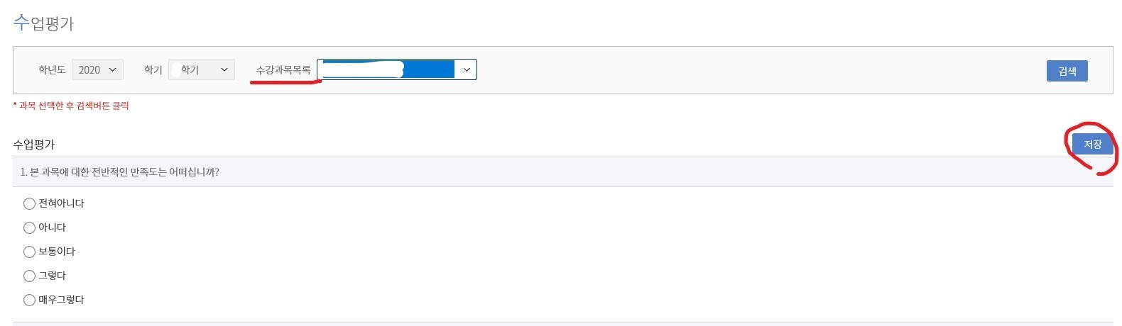 (모든 문항에 응답하고, 꼭 저장 해 주시기 바랍니다. 그렇지 않은 경우 수업평가가 완료되지 않습니다)